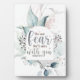 Decorative plaque with inspirational quote scripture depicts a beautiful floral watercolor design with simple light blue and grey leaves. It features an encouraging Bible Verse Isaiah 41:10, "Do not fear, for I am with you."