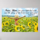 Inspirational quote custom poster depicts a woman in a beautiful field of sunflowers with her hands lifted in worship to the Lord. It features Bible Verse Isaiah 60:1, "Arise, shine, for your light has come, and the glory of the Lord rises upon you." *