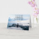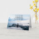 Inspirational quote scripture greeting card depicts a man setting on the sea shore looking out at the ocean and beautiful sky and clouds. It features Bible Verse Isaiah 64:4, "no ear has heard, no eye has seen a GOD like you who works for those who wait for him!"