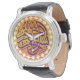 Beautiful Muslim watch with Islamic print of Bismillah on a yellow orange ornate in Arabic design patterend background. This watch is a wonderful gift for every Muslim. Change the background colour and the wristband to customise it to your needs.