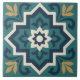 The Cordoba Star tile design draws inspiration from classical Islamic geometry and Moorish craftsmanship. Featuring a navy blue eight-pointed star at the centre, it’s framed with flowing arabesque flourishes and delicate gold-accented floral motifs. The harmonious teal, cream, and blue palette evokes a refined Mediterranean warmth, making it perfect for decorative tiles, kitchen accents, and culturally inspired interiors.