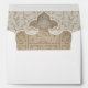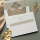 This exquisite envelope set is the perfect outer garment for your wedding invitations, featuring a lace-effect interior that embodies the essence of Islamic art. The delicate pattern, printed in subtle shades of cream and ivory, casts a vision of elegance as soon as your guests unveil the envelope. The exterior, equally elegant, carries the names and address in a classic typeface, bordered by a strip of matching lace-effect design. This set is a prelude to the splendour of your wedding day, promising an event wrapped in beauty and grace.