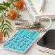 A cool oblong, acrylic Keychain to personalise, with a traditional Islamic pattern in turquoise blue, purple and light green, outlined in white, teamed with matching stripes. Part of the Posh & Painterly "Islamic" collection.
