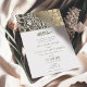 This exquisite wedding invitation merges the intricate beauty of Victorian design with the elegant script of Islamic art. The front cover features a symmetrical Victorian floral pattern in gold, accented with a pair of love birds, each carrying an initial from the couple's names. The interior of the invitation reveals a harmonious blend of traditional English and Arabic calligraphy, inviting guests to celebrate the union. The invitation details are set against a textured white background that enhances the legibility of the text, while the gold design elements resonate with the richness of both cultures. This invitation is a beautiful testament to a wedding that embraces cultural fusion with grace and style.