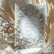 Celebrate your wedding in style with this refined Islamic invitation featuring white tulips and intricate foliage. The design is adorned with a faux embossed baroque floral frame, exuding timeless elegance. The creamy white background and delicate detailing create a sophisticated and luxurious appearance, perfect for formal weddings or romantic celebrations. Please note, the embossed effects are part of the printed design and do not include real raised textures.