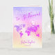 Glitter and Girly World Map Invitation Birthday Destination, like passport. Pink glitter details for the beach party