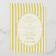 This statement wedding design is perfect for couples looking for a chic, cheerful, preppy, or vintage design with a bold color palette. The eye-catching design features rich, vertical lemon yellow and ivory stripes paired with a charming scalloped edge oval, giving it a unique, classic-with-a-twist aesthetic.