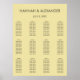 A modern wedding seating chart featuring clean typography on a warm island citrus yellow background. Designed for contemporary, summer, and destination weddings, this seating chart makes it easy for guests to find their table while adding a stylish statement to your reception décor. Fully customizable with guest names and table assignments.