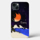 Swaying palm trees on island beach with orange moon on a starry night. Add name or delete text