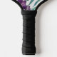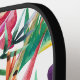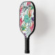 A beautiful island style pickleball raquet with vibrant orchids, parrot flowers, lilies, palm fronds and foliage over a contrasting white background add a pop of colour to your game. Personalise this design with your name and monogram initial. It makes a wonderful gift for friend, family member, or pickeball teammate.