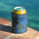 Relax in paradise with a can of your favourite drink. This can cooler features tall palm trees reaching up into the bright blue sky. This photo captures the long thin trunks and the bright green palm branches of these tropical trees. "On Island Time" can easily be customised if you desire. The same design appears on both sides of the cooler.