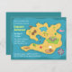 What is a pirate theme birthday party without some exciting treasure? Get your children guests excited with this colourful invitation that comes in the form of a treasure map of an island. It is filled with various adventures and map details, compass, huts of the indigenous people living on the island, the jetty, the sharks, the pink whale, the mountain regions, the volcanic and poisonous area where skulls lie and importantly, the red marking where the treasure is! Personalise easily with your party details!
