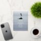 Blue watercolor inspired background and white text below a foil island with two palm trees and foil border.
