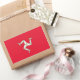 The Isle of Man's flag consists of a red background with the 'three legs of man' symbol at the centre. This is a triskelion with three armoured legs, and has been the Manx coat of arms since the 13th century. The flag was officially adopted in 1937, and has a 1:2 ratio.