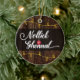 Isle of Man, Manx Christmas greeting - Nollick Ghennal rustic style holday ornament, with an Isle of Man flag bauble, Christmas lights and snow design on a rustic background.