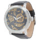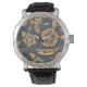 Exquisite gold and slate coloured wristwatch decorated with intricate floral designs. Patterns are based upon traditional floral motifs from Islamic art. Makes a great gift for someone special, or just as a treat for yourself! Feel free to customise your design by choosing your strap and bezel.