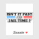 Isn’t It Past Your Jail Time Funny Saying Quote Funny Isn’t It Past Your Jail Time Saying sticker Grab this Isn’t It Past Your Jail Time Funny Saying Quote to show pride and love to be american. presents from father, mother, son, daughter, kids, mother, father, friend, grandma, grandpa. Grab this inspirational retro groovy ABCs of Isn’t It Past Your Jail Time Funny Quote apparel design. Great present for man, women, dad, mum, kids, daddy, husband, wife, family who's proud of his president, mexican, american, latinos.