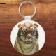 Portrait of tiger (Panthera tigris) showing teeth and seen from front and isolated on white background