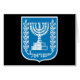 The Emblem of the State of Israel (Hebrew: סמל מדינת ישראל) shows a menorah surrounded by an olive branch on each side, and the writing "ישראל" (Hebrew for Israel) below it. Most commonly light blue and white, the coat of arms does appear in different colour combinations depending on the use.
