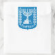 The Emblem of the State of Israel (Hebrew: סמל מדינת ישראל) shows a menorah surrounded by an olive branch on each side, and the writing "ישראל" (Hebrew for Israel) below it. Most commonly light blue and white, the coat of arms does appear in different colour combinations depending on the use.