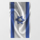 Window cling with the flag of Israel in wavy fabric style design. This design features the Israeli flag colours and design with a beautiful waving material textured effect. This flag design is a great way to show you are proud to be from Israel.