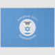 Personalised tissue paper shows an angel wearing the flag of Israel for holiday or Hanukkah gift giving. Great for kids. The Israeli Flag angel is found inside a white, fractal circle of squiggly squares. The background is a blue fractal of squiggly squares. Add your own text or personalise with a name, holiday, and the year. Share your heritage with your gifts this holiday season.