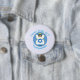Personalised round button pin features an angel wearing the flag of Israel and flying in the centre of a digitally created, textured, blue circle. The primary colours in this design are blue and white, chosen with Hanukkah in mind. Blue letters read ISRAELI ANGEL and make a space for the year and a name, allowing you to create a customised gift or personalise your look. Background is white squiggly squares. Fun stocking stuffer, especially for families of multiple religions.