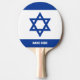 Israeli flag custom table tennis ping pong paddle. Personalised sports game gift idea for tabletennis players. Flag of Israel with Jewish star of David design personalised with name or monogram. Customisable background colour. Make one for your friends, kids, co worker, colleague etc. Also fun for Bat / Bar Mitzvah party.