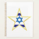 organize your schedule and goals with this professional spiral planner featuring a magen david cover design. the artwork includes a gold bordered star with the traditional blue white stripes of the israel flag. this notebook is perfect for students or professionals who want to incorporate their jewish pride and hebrew heritage into their daily routine. use it as a personal zionist emblem and religious symbol to stay inspired throughout the year. it makes an excellent gift for anyone looking to stay organized while celebrating the holy land.