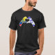 I give wanted to give this a 4 instead of a 5 because these Basic DARK T0shirts run unexpectedly SLIM or Narrow. Which is great if you do not have a potbelly, but I have a paunch. It isn't the shirt's fault that I've got a beer belly. The design and shirt itself is a quality cotton shirt. The color is more of a deep purple, but still a very pretty color. The Basic DARK T-shirts run a bit SLIMMER than the Basic Ts. The neck is a fraction narrower (or seems to be narrower) also. I'm a paunchy middle-aged woman and my neck is 12 inches (31cm) thick and the neckline fell about the same as in the photo of the man, and I had the desire to tug it a bit. So if you're a thick necked man or like loose shirts, be aware these are slimmer shirts. Once I get rid of my lockdown paunch it'll look great. The shirt washed well in cold water with no apparent bleeding. We don't have a dryer, so it hung dry. Did not shrink. Love the colors and the design. The design looks smaller on my shirt than it does on the model on-line. But still, it looks good on the shirt. The printing looks as it does on the model, just the size seems fractionally smaller. Washed garment in cold water, hung dry and design appeared unaffected.