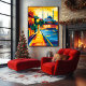 Experience the timeless beauty of Istanbul with this vibrant cityscape featuring the iconic Blue Mosque and a lively waterfront street. Designed in an abstract fauvist style, this artwork uses bold colours and expressive brushstrokes to capture the unique energy and charm of this historic city. Perfect for urban art lovers and contemporary decor, it adds a striking and colourful touch to any interior space.
