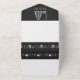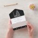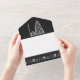 Bring touch of geeky fun to your event with this all-in-one wedding invitation and RSVP card. On the inside you will find a white graph on a deep black background above a section with some sample text that can be customised for your special day. The lower section of the invite features a removable, postcard sized piece that has some sample RSVP text sitting above an onyx black border with a pattern of Fibonacci spirals, integrals, Pi, and graphs scattered across the bottom. Outside, a similar border of mathematical symbols on black can be found below the areas where you would add stamps, standard, and return addresses for both the invitation as a whole and the returnable RSVP section. The flap used to fold over and seal the card has a single graph on a deep onyx background with a sample set of initials that you can customise for a final personal touch that shows off your love for math and each other. Be sure to check out the rest of the It Adds Up in Black set for other coordinating products, including return address labels.