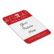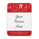 This magnet has a cherry red border across the top and bottom with a pattern of white Fibonacci spirals, graphs, Pi, and integrals and a spot for your names and the date of the special, geeky event. Finish customising this for all of your friends and family by adding your favourite photo to the centre, creating a great memento for all of your invited guests and a fun reminder of the shared interest in math.