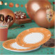 Add a fun, coordinated touch to your rehearsal dinner, bridal shower, or even a more casual math-themed wedding with these paper plates, featuring a bright orange rim decorated with a pattern of white graphs, Fibonacci spirals, integrals, and pi, with a white banded centre section that completes the fun and geeky look.
