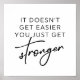 It Doesn't Get Easier You Just Get Stronger Motivational Black & White Fitness Quote Saying Typography