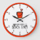 Cute orange-red sand pail and shovel decorate this Beach Time clock with a whimsical style text. Fun decor for a beach house or cottage or for a beach lover. Available in a variety of colours!