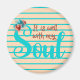 It Is Well With My Soul turquoise and peach coloured magnet with turquoise and peach roses. The background is peach with turquoise stripes. This magnet was designed to bring a bit of the beach into your life ! Check out our shop for more in this collection.