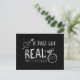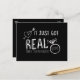 IT JUST GOT REAL Save The Date Engagement Postcard. The background can be any colour (black is shown for example) Choose a colour from the colour picker.