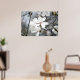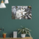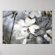 This poster has a beautiful close up photo of white blossoms and buds on a tree in spring. Amazingly beautiful art for your home or business. Mostly gray and white with a touch of pink. Striking!