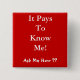 It Pays To Know Me! , Ask Me How ?? 15 Cm Square Badge