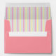 This whimsical envelope coordinates with the "It’s A Girl-Baby Zoo Animals Invitation”. The front design features this fun group of baby zoo animals. On the back flap, there is an area for the return address. Inside the envelope, there is a pink and yellow striped pattern, that coordinates with the invitation.