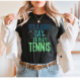 Serve up style with this bold tennis tee! Featuring big green-hued text and two funny tennis player graphics, it's perfect for players, coaches, and fans. Great for practice, tournaments, or casual wear. Makes a great gift for any tennis lover!