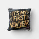 A graffiti-style text art piece on a white background with black outlines. The text reads "IT'S MY FIRST NEW YEAR" in bold, stylized lettering with a metallic gold gradient effect. The letters have a 3D shadow effect created by black outlines that create depth and dimension. Small decorative gold splash marks are positioned around the text, particularly near the top and bottom. The text is arranged in four lines, with "IT'S MY" on top, "FIRST" in the middle, and "NEW YEAR" at the bottom. The lettering style is modern and urban, with smooth curves and sharp angles characteristic of contemporary street art. The entire piece has a clean, professional finish with sharp contrast between the gold text and white background. Great for baby shower game gifts!