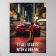 It Starts With A Dream, Supercar Hustle Motivation Poster