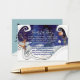 Front Details: Features your heartfelt poem set against a magical blue forest with graceful swirls and hidden reindeer peek-a-boo elements. A charming little bird is nestled among majestic, snowy cliffs, creating a serene winter wonderland.