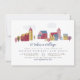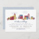 This cute baby shower invitation features a hand-painted illustration of a little village, with two rain clouds and colourful trees. Your custom shower details appear below. These cards reverse to a white polka pattern on a baby blue colour.