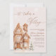 The It Takes a Village Christmas Winter Baby Shower Invitation with a gingerbread house theme and a creates a charming and cosy winter wonderland scene. The invitation features a delightful, whimsical village of gingerbread houses dusted with “snow” icing, surrounded by delicate snowflakes. Each house, intricately decorated with icing, gumdrops, and tiny candy accents, represents the welcoming support of friends and family as they come together to celebrate the new baby. The colour palette is soft and inviting, using neutral winter tones. It’s an invitation that promises a gathering full of warmth, love, and shared excitement amid a cosy winter scene. Matching items available.