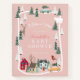 This cute "it takes a village" Christmas holiday girl's baby shower guest book features a light pink background with a Christmas town/village. The reverse side features a pink background with botanical patterns. Personalise it for your needs. You can find matching products at my store.
