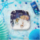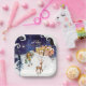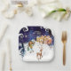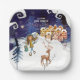 This elegant square paper plate is part of the "It Takes a Village" baby girl collection. Featuring a charming winter scene with pink-toned village houses, a friendly snowman in a pink scarf, a graceful deer, and a winter fairy carrying a new arrival, it’s the perfect addition to a "Winter Wonderland" themed shower.