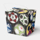 Take-out style favour box with an image of an assortment of colourful soccer balls in front of a soccer goal net on black. See the entire Father' Day Favour Box collection in the PARTY FAVORS section.